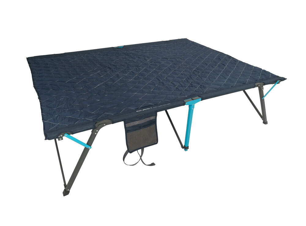 The Quest Fast Bed 150 XC Queen camp stretcher is a strong, oversized, stable, and quick-to-set-up full-size queen camp stretcher. It packs down quickly and easily to give you a great night’s sleep in the great outdoors. At a full 150cm wide, there’s loads of room for 2, and the sling is nice and taut for supreme support. The middle bar that runs the length of the stretcher will make sure you and your companion don’t roll into each other in the middle.