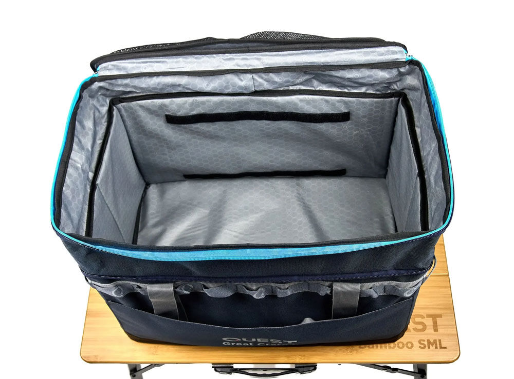 - Removable Lid Organiser: A practical zipped organiser is fitted under the lid and can be easily removed. It's designed to hang on a Quest Table (sold separately) for quick access to smaller items, like utensils or tools.
