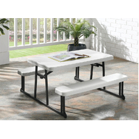 - Multi Purpose Table: Gather around this 2-bench straight table, great for outdoor dining or entertainment for kids.