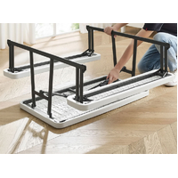 - Sturdy Support: With the legs and support frame made of powder coated steel, and the table top made of high-density polyethylene, this stable table is built to last and handle a heavy load.