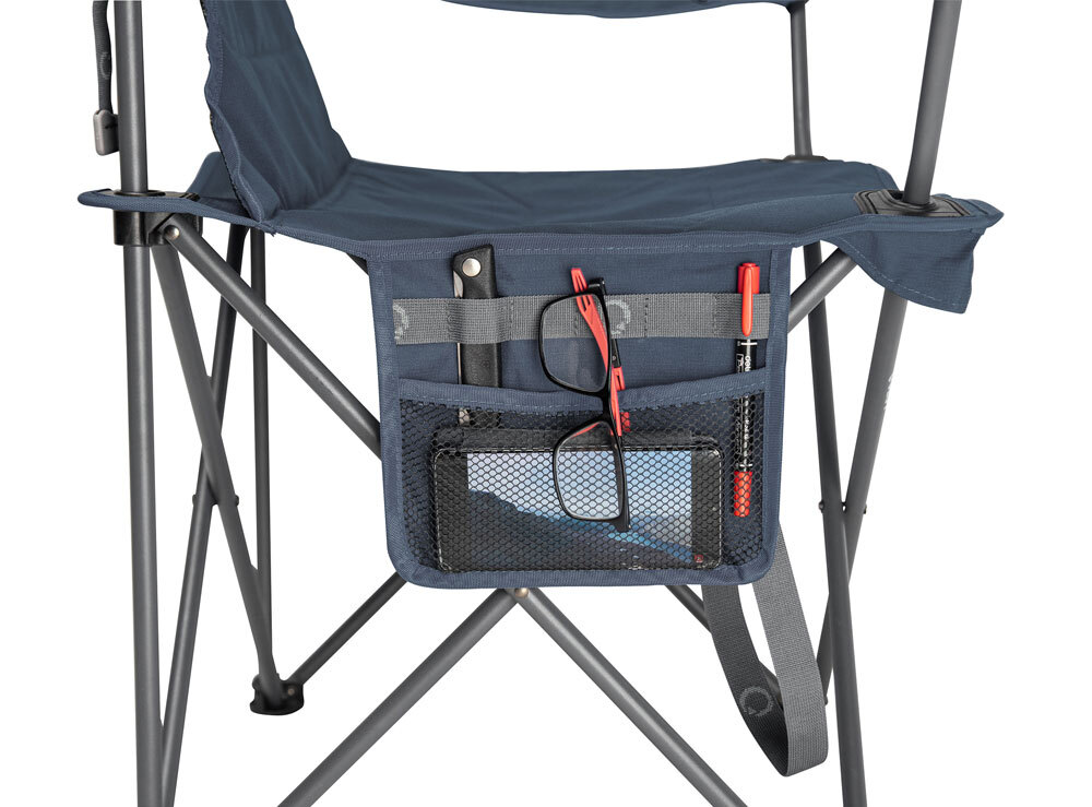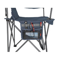 But that's not all! This awesome chair comes with some handy features too. It has a rear mesh pocket so that you can stash your essentials within reach. There's also a solid drink holder in the arm, keeping your favourite beverage secure while you enjoy the great outdoors. Plus, with the side organiser pocket, you'll have everything you need right at your fingertips.