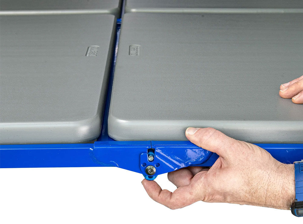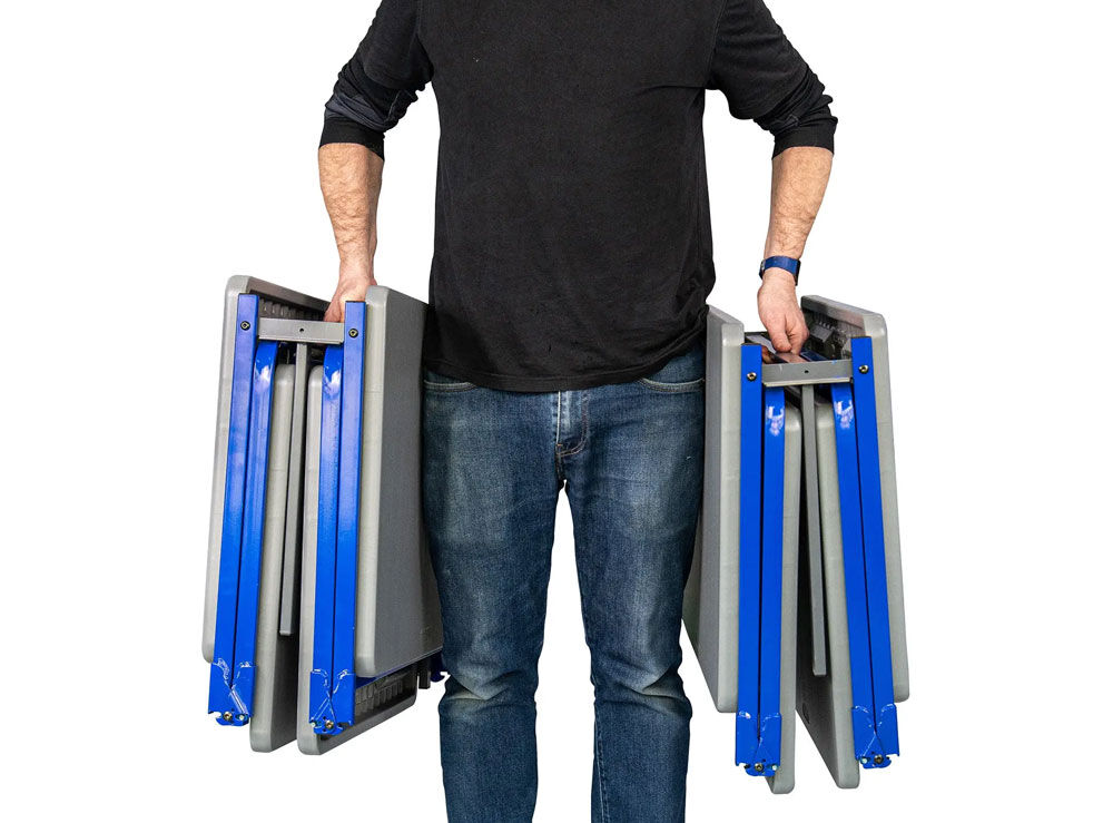 The platform conveniently packs away into two heavy-duty carry bags, making transport easy. Setting it up takes just a couple of minutes, thanks to the patent-pending gravity locks that secure it in an open position to prevent accidental folding while in use.
