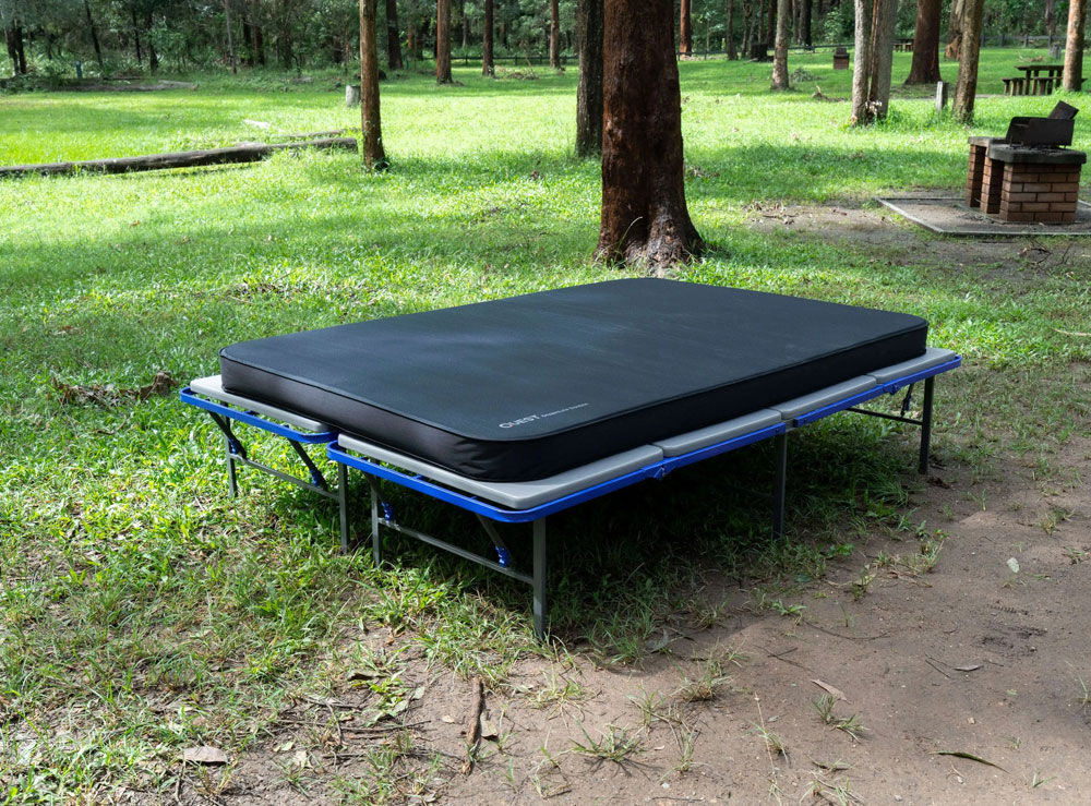 The Quest Swag Platform - Queen is designed for individuals who want to elevate a double or Queen-size swag off the ground, making it easier to get in and out. With no central bar to obstruct you, this platform ensures a comfortable night’s sleep without any rolling together.