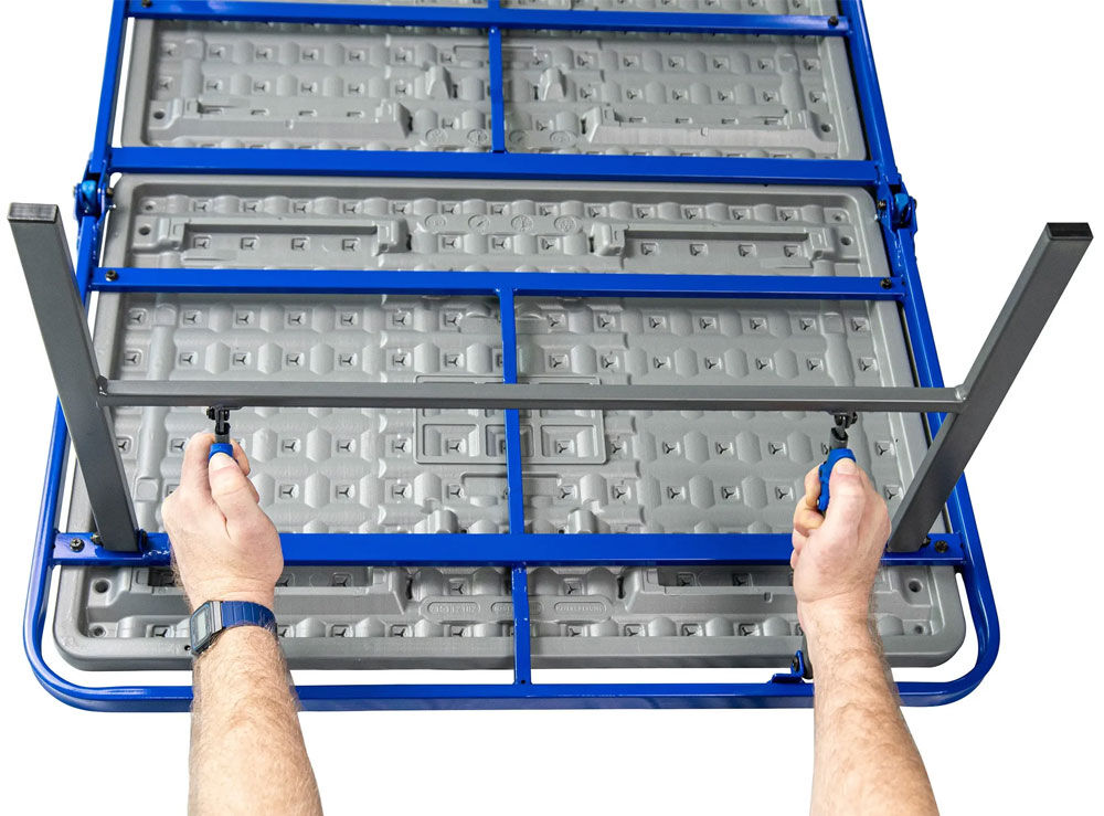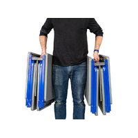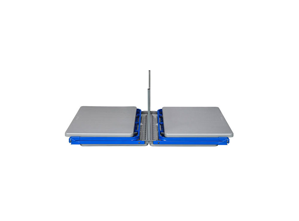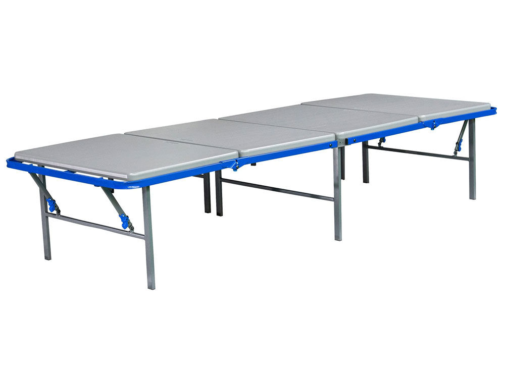 The platform conveniently packs away into two heavy-duty carry bags, making transport easy. Setting it up takes just a couple of minutes, thanks to the patent-pending gravity locks that secure it in an open position to prevent accidental folding while in use.