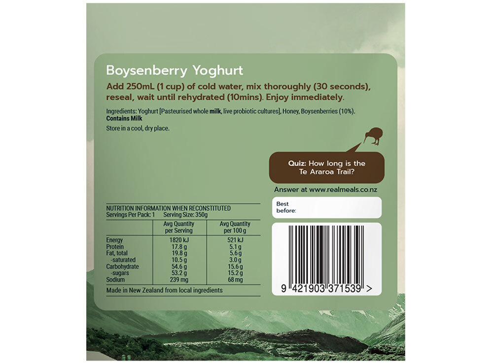 Real Meals Boysenberry Yoghurt Ingredients: