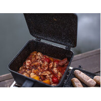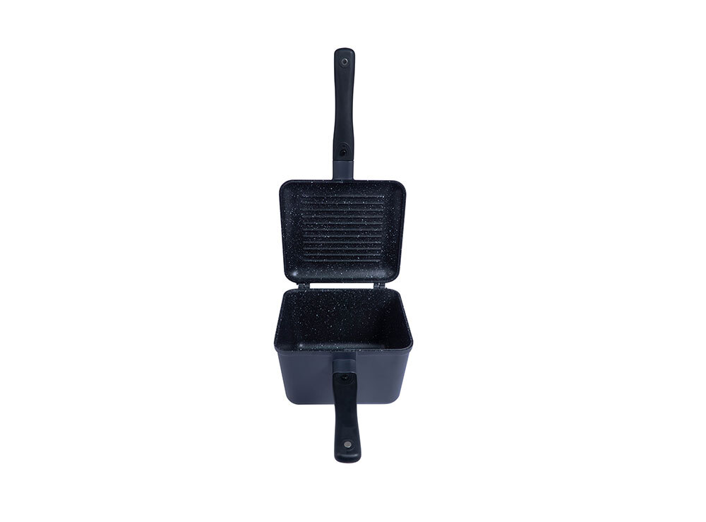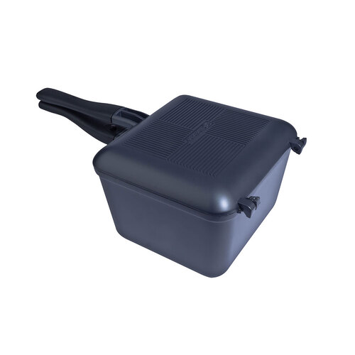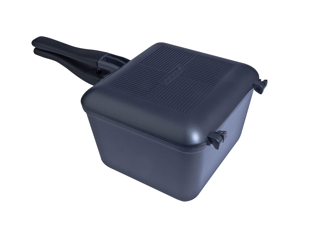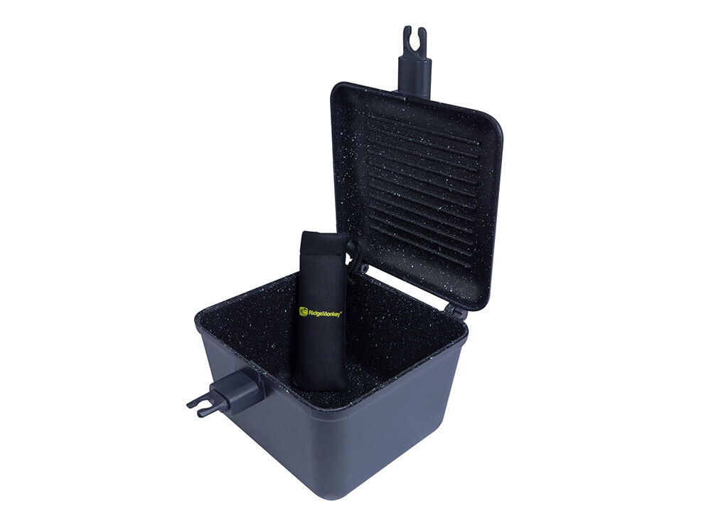 The griddle pan acts as the lid on the deeper pan, and can be detached to become a separate pan, allowing you to cook two lots of food at once. The griddle pan is also interchangeable with the RidgeMonkey Connect Sandwich Toaster XL Granite Edition.