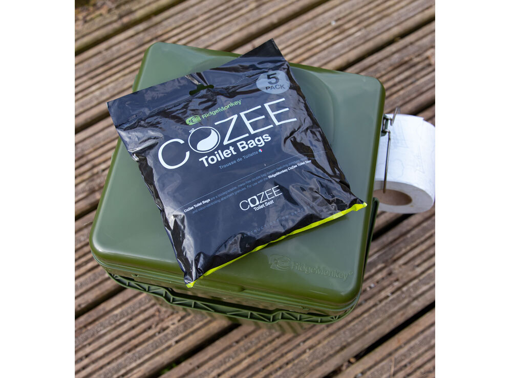 The RidgeMonkey CoZee Toilet Bags - 5 Pack are a biodegradable, mess-free double bag system featuring puncture-resistant materials and odour-controlling absorbent granules. For use with the RidgeMonkey CoZee Toilet Seat.