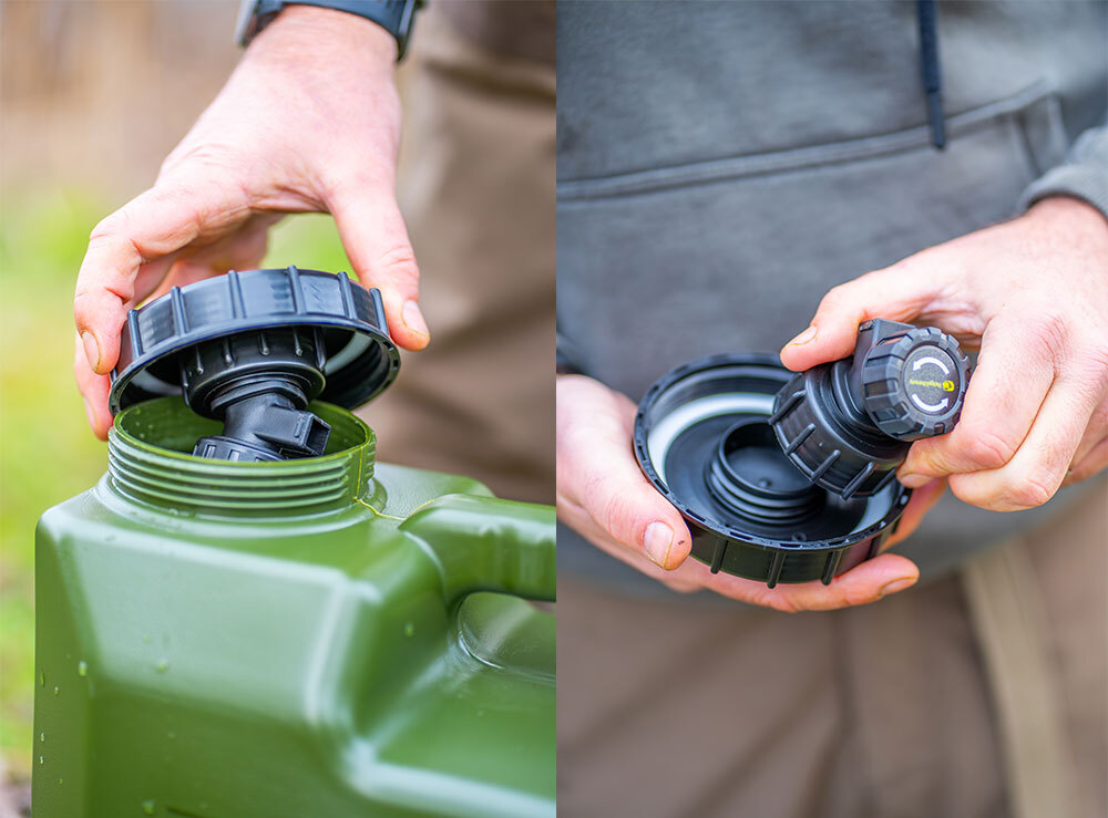 The RidgeMonkey SpeedFlo Heavy Duty Water Carrier - 10 Litre comes supplied with an updated removable tap with a simple to use, single-handed mechanism.
