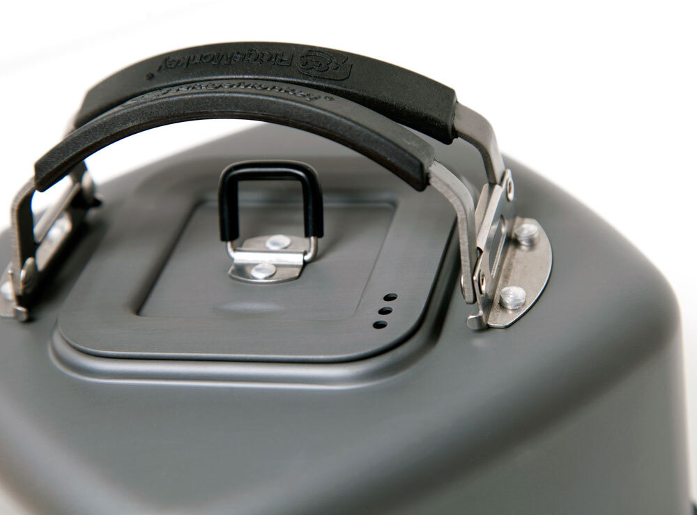 The RidgeMonkey Square Kettle - Small redefines traditional thinking and provides a fresh new look at a commodity that has remained effectively unchanged for hundreds of years. The large surface area of the square footprint ensures a fast boil especially when used in conjunction with the RidgeMonkey Quad Connect Stove, while the folding handles & ergonomic design mean it can be packed away into the tightest of spaces. A perfect complement to the RidgeMonkey cookware range, the Square Kettle can be used on any direct heat source.