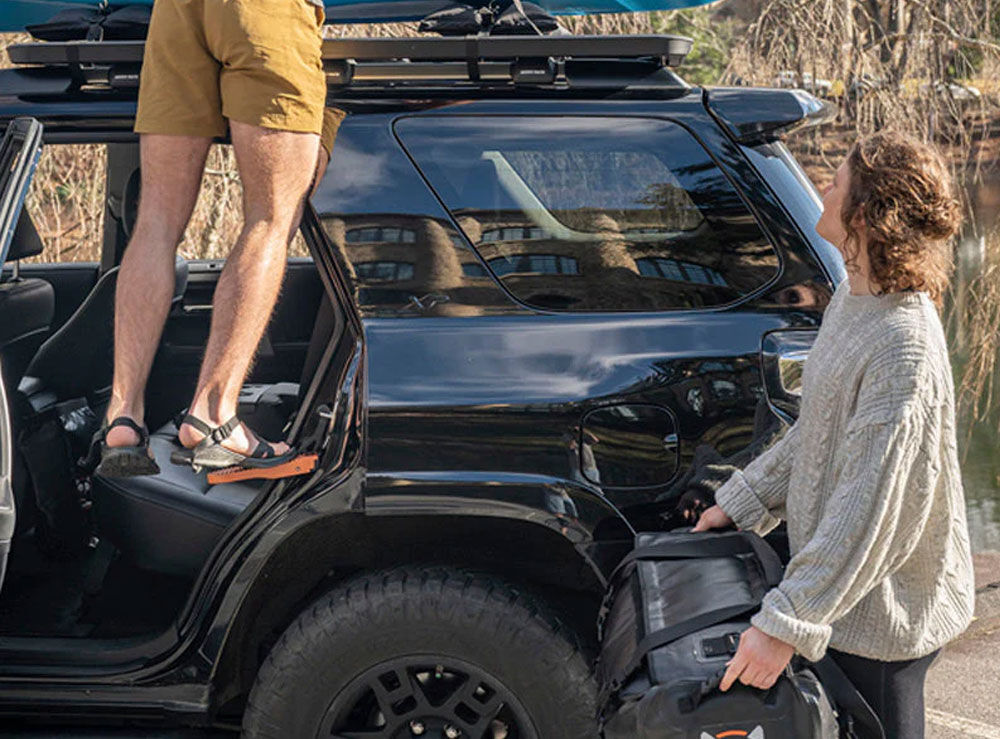The Rightline Gear Moki Ascent Car Door Step is an innovative and highly practical solution designed to give you quick, secure, and stable access to your vehicle's rooftop.