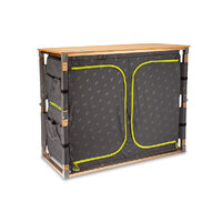 This pantry is quick to assemble and has lots of space inside for food and pantry items. Mesh doors make it easy to see inside when it is closed and the hard top is great to use as another table in the tent!