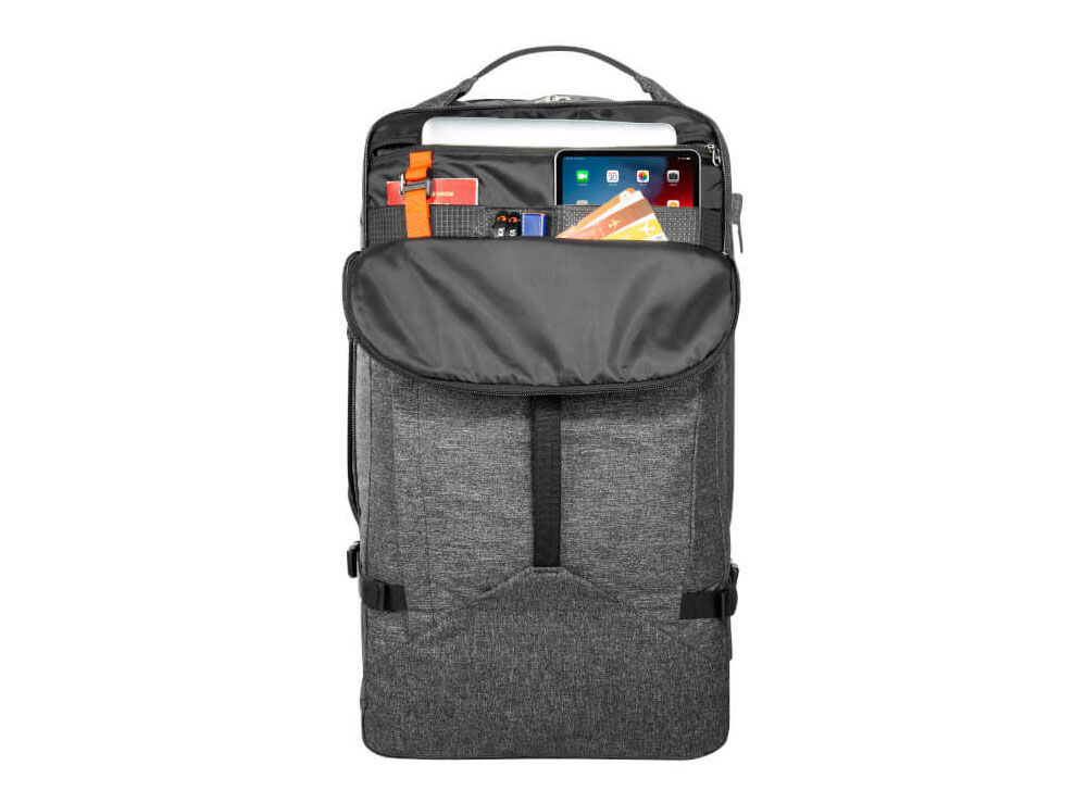 - Large zip-up front pocket with organizer and padded smartphone compartment