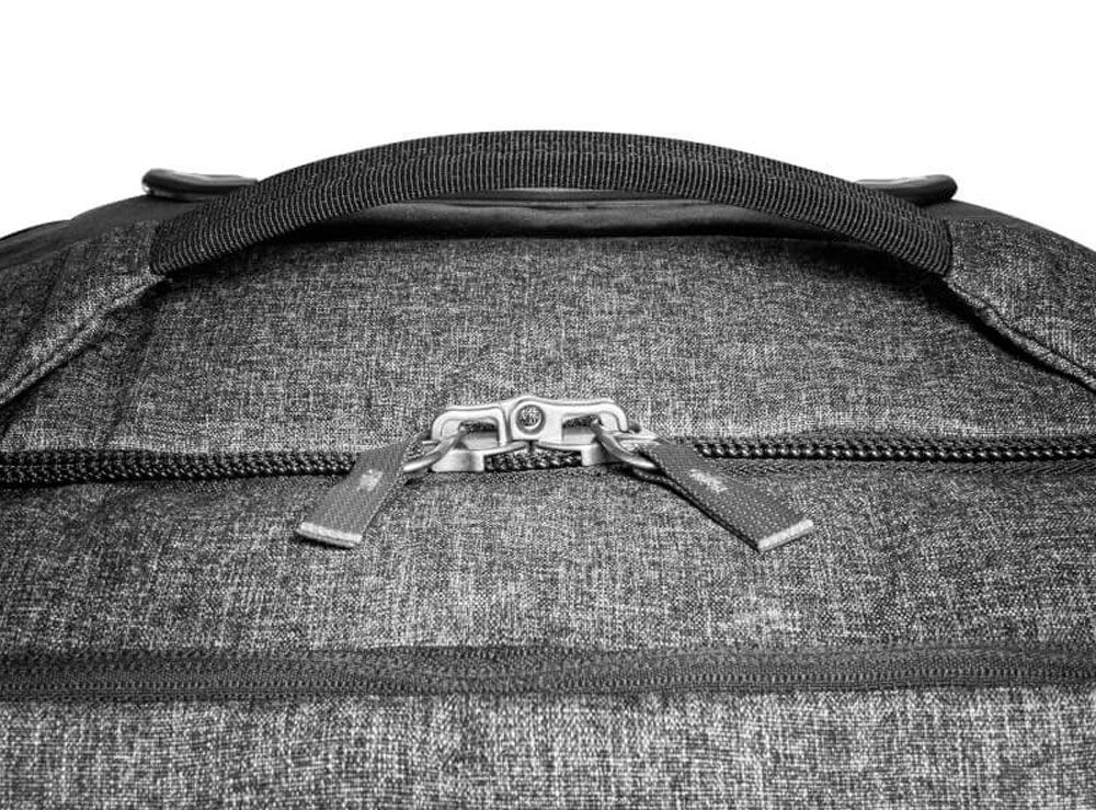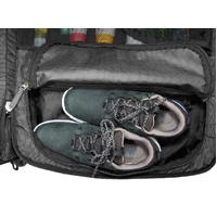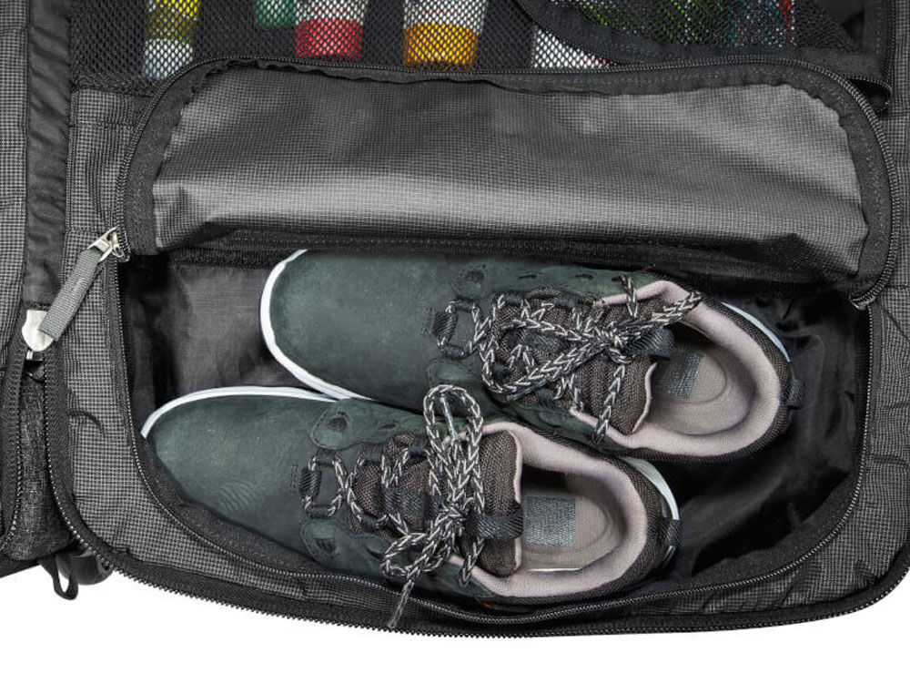 - Ventilated zippered shoe compartment under the lid