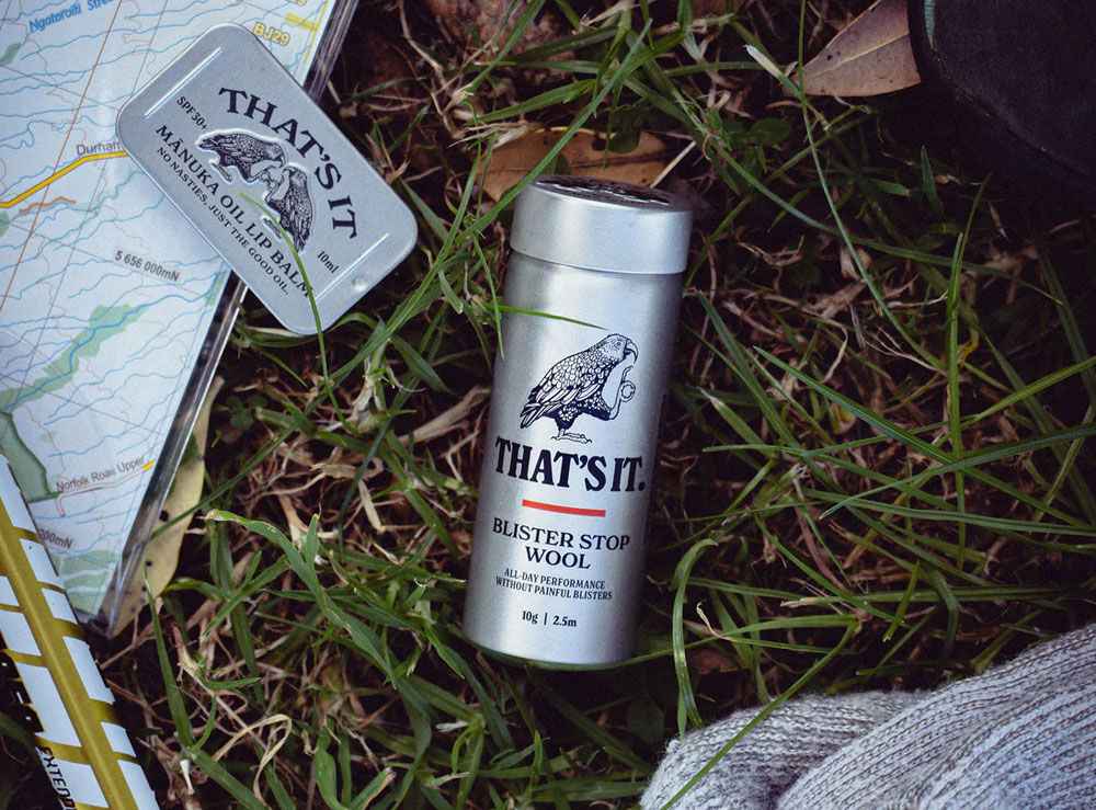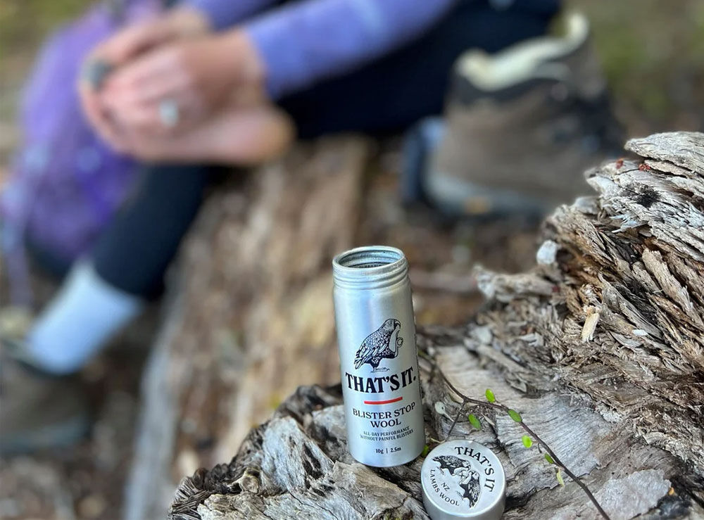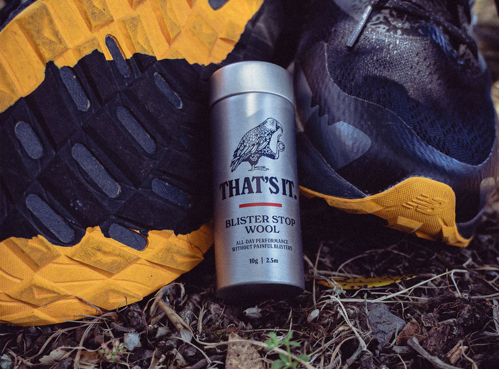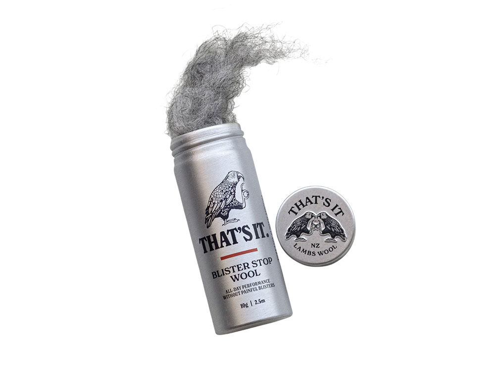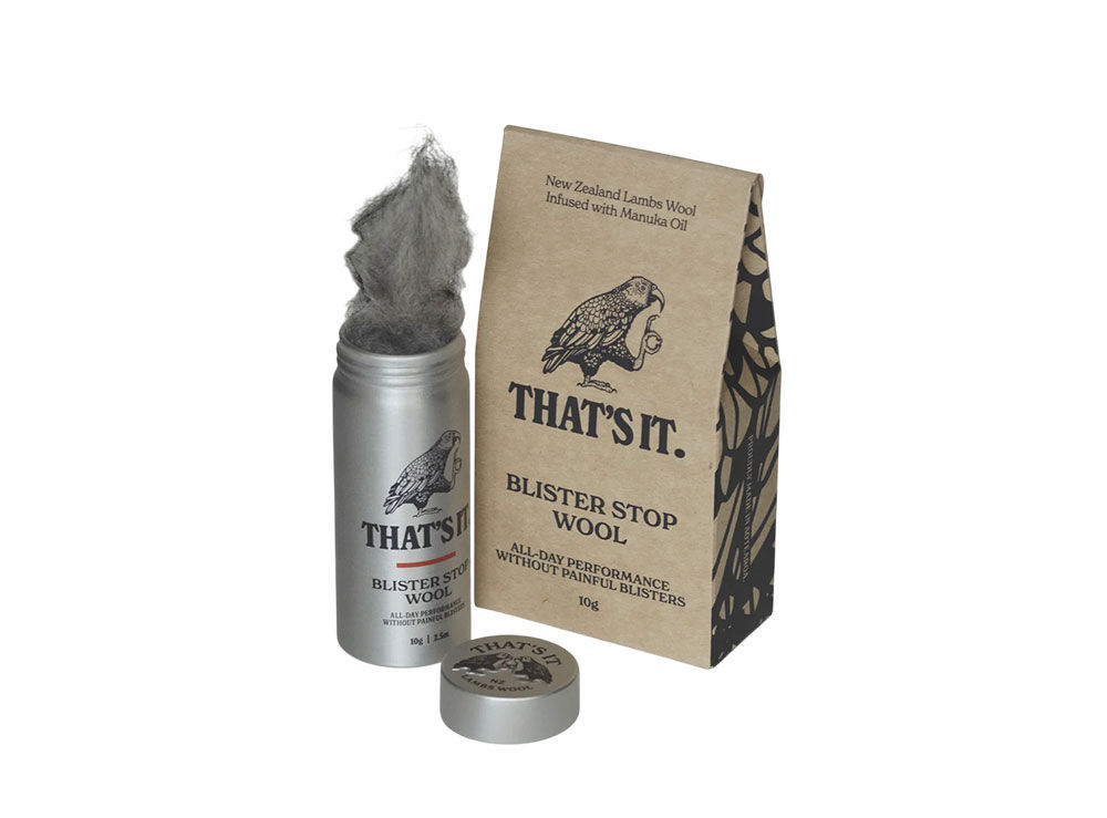 That's It Blister Stop Wool - 10g will provide padding, prevent rubbing, wick away moisture and the infused Mānuka Oil will soothe, lubricate and keep the area free of bacteria and fungus. It comes in a robust but very light aluminium tube you can throw in your pack to have on you any time you need it and a handy refill box to keep it topped up.