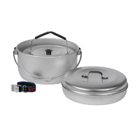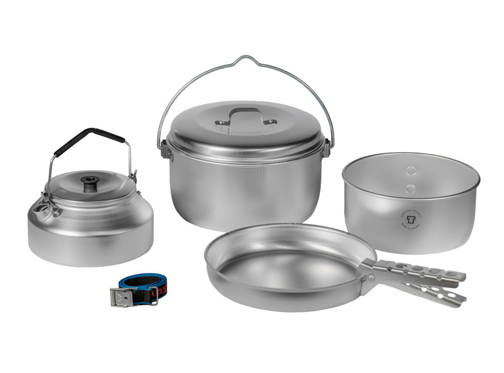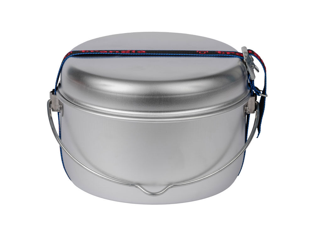 - Included Accessories: Comes with essential accessories for ease of use and transport: Lid: A single lid fits both the ⌀200mm frypan and the 2.5L billy. Pot Grip/Handle: A detachable handle for securely gripping and lifting the hot pots and pan. Strap (72cm): A durable nylon strap to secure the nested set during transport.