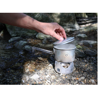 This complete set combines the simplicity of the classic spirit burner with an efficient 0.5L pot, offering maximum functionality at a minimum weight.