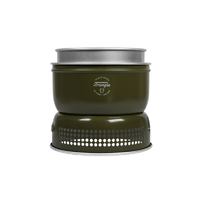 This stove set combines the spacious capacity and storm-proof reliability of the 25 Large series with a unique, limited-edition deep pine green colour applied to the windshields. It is ideal for groups of 3–4 people and is constructed entirely from ultralight aluminum for maximum portability.