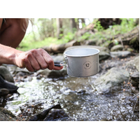 Designed with classic Trangia shapes, this single piece expertly transitions between being a mug, cup, and small cooking saucepan, all while maintaining an incredibly low weight and compact profile.