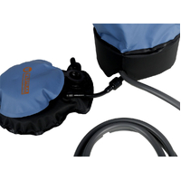 - Heat Absorbent: The dark colour of the tank can absorb solar heat if left in the sun, providing a naturally warmed shower, similar to a solar shower bag.