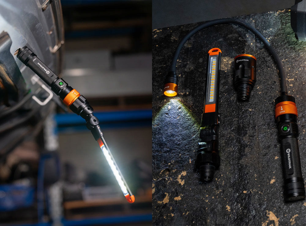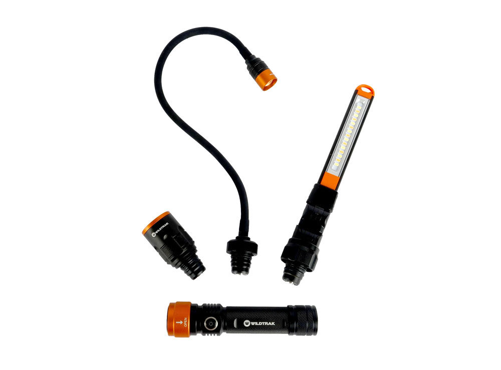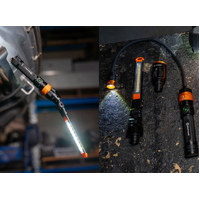 This innovative system features a single magnetic power base that quickly accepts three interchangeable light heads—a Flashlight, a Bar Worklight, and a Flexible Gooseneck Head—ensuring you always have the perfect light for any task, no matter how awkward the space.