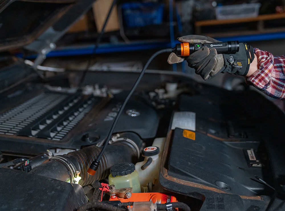 - 3 Interchangeable Heads: Offers maximum versatility by easily switching between three light types: Flashlight Head: For focused, long-distance beam lighting. Bar Worklight Head: For wide, even flood illumination across a work area. Flexible Gooseneck Head: For precise, targeted lighting in tight or obscured spaces.