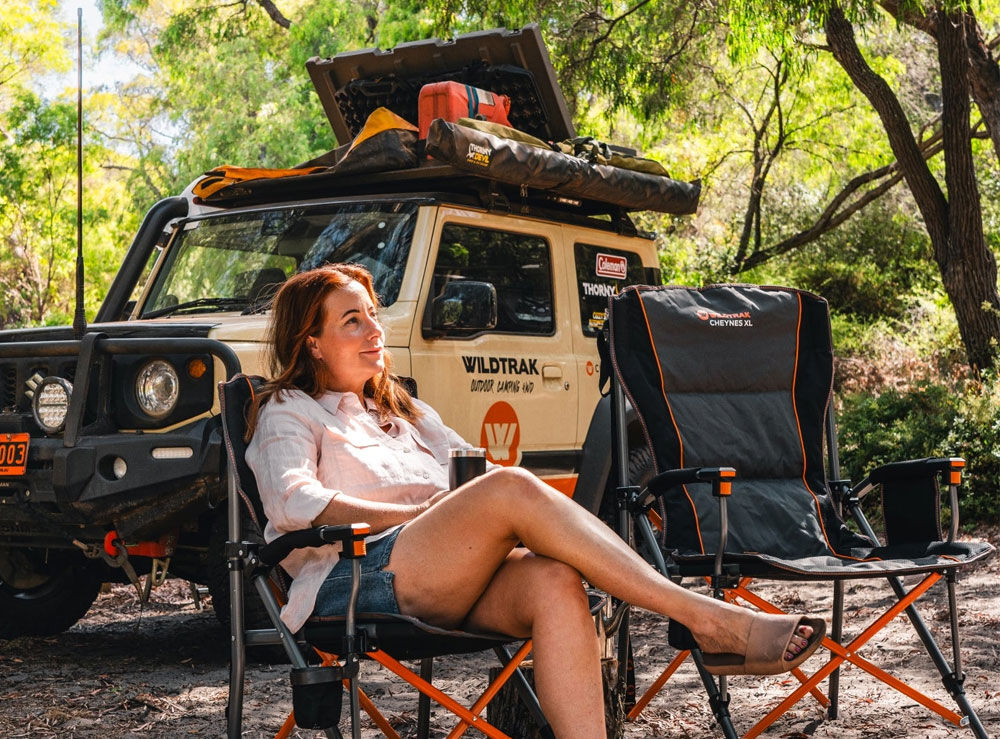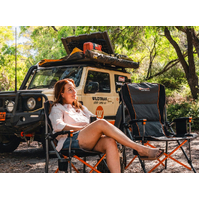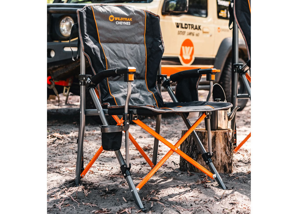 The Wildtrak Cheynes Solid Arm Chair DLX (Deluxe) sets a new standard for camping and outdoor seating, combining supreme comfort with robust, high-quality construction.