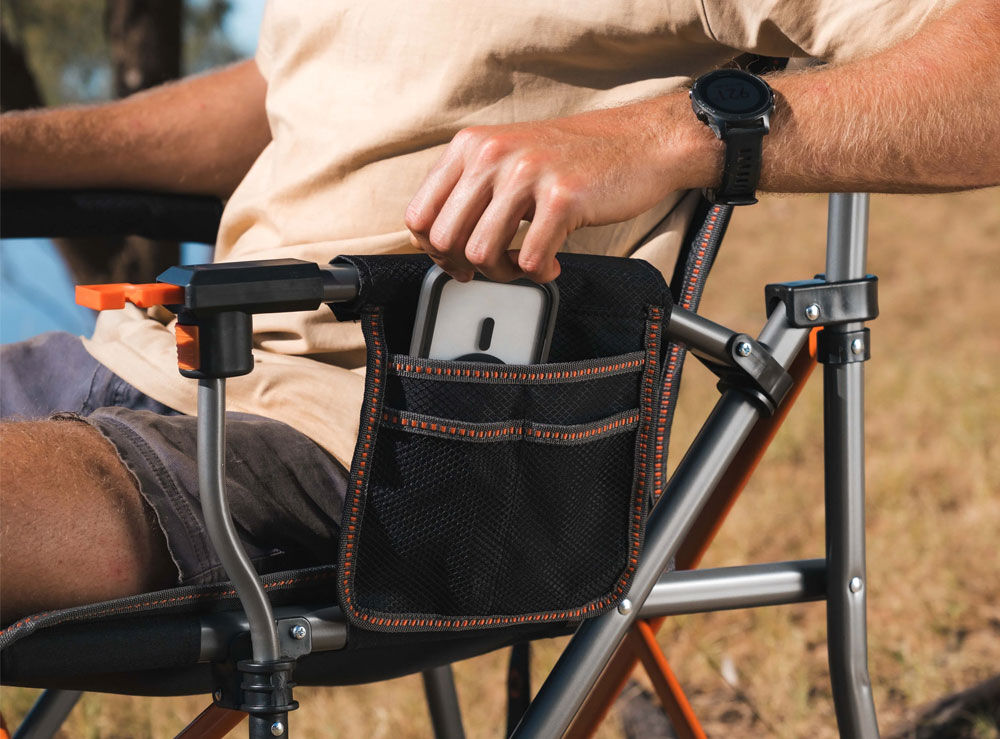 - Insulated Cooler Bag: Includes a practical, integrated insulated cooler bag (often built into one side of the chair) to keep your drinks and snacks cool and within easy reach.
