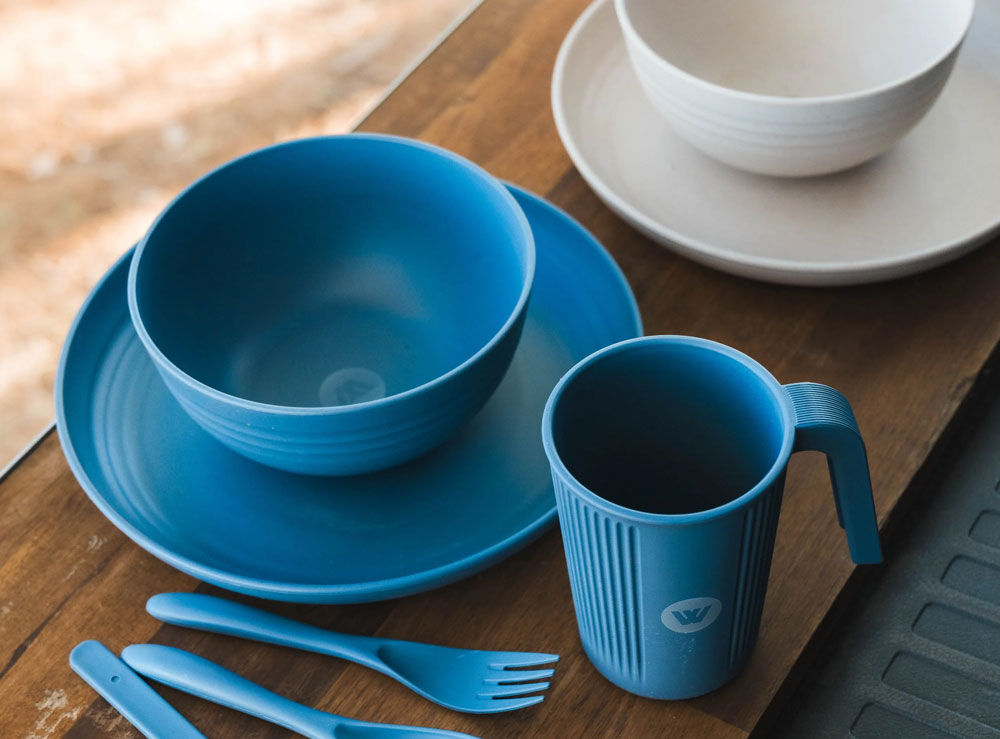 The Wildtrak Wheat Straw Bowl in a tranquil Blue is an excellent addition to any sustainable kitchen or camp setup.