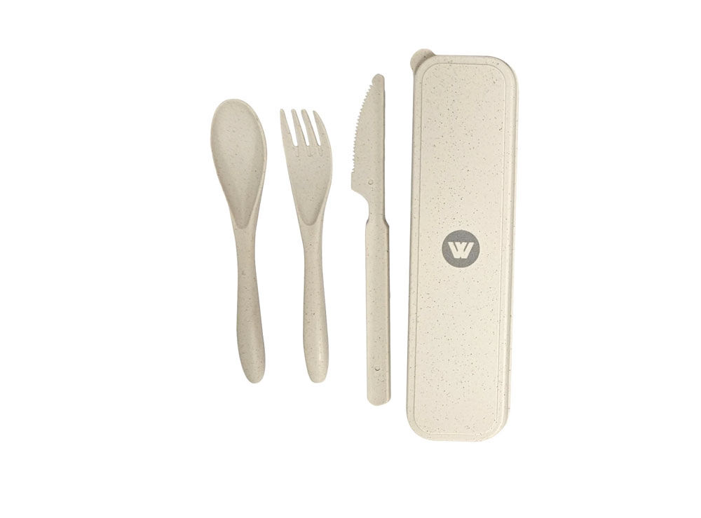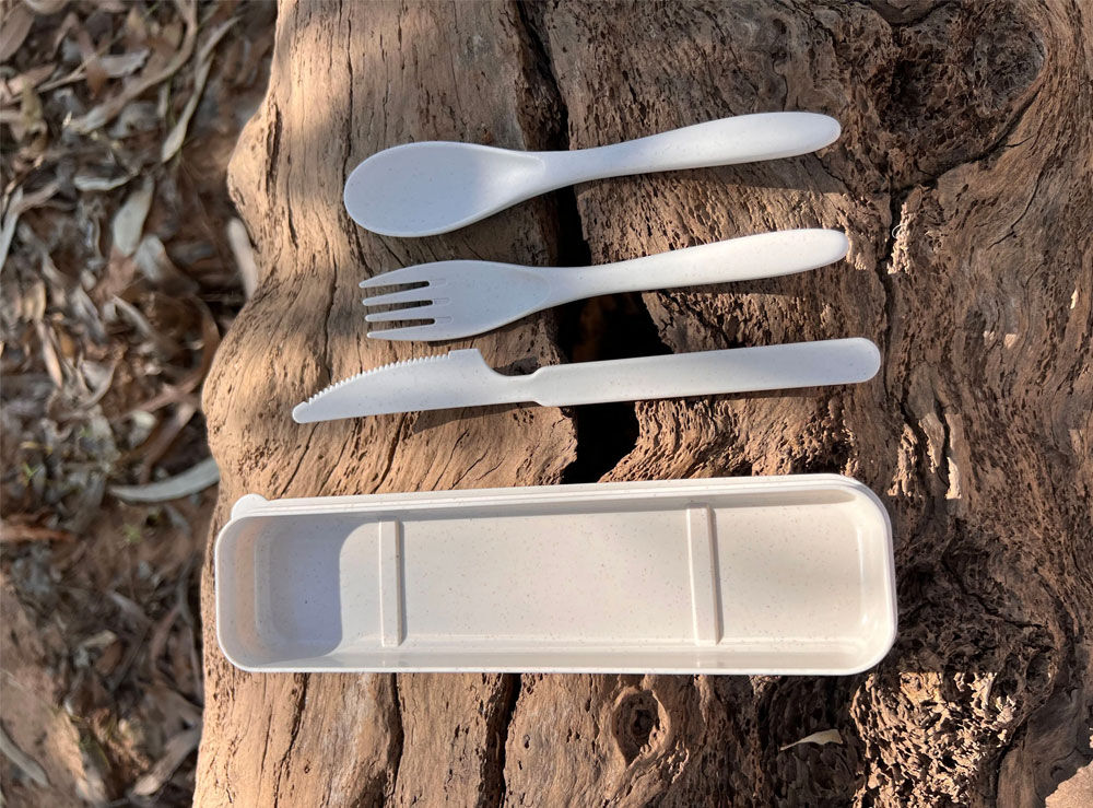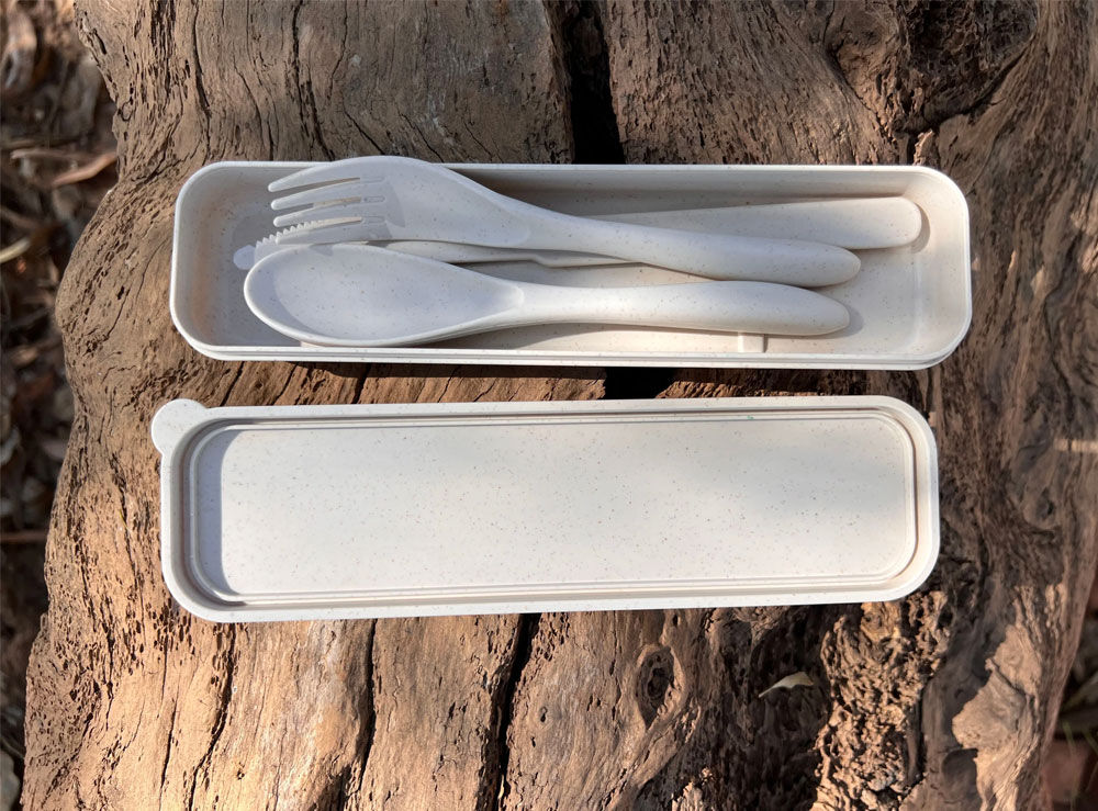 The Wildtrak Wheat Straw Tableware Utensil Set in Cream is the definitive answer to single-use plastics for the eco-conscious traveller.