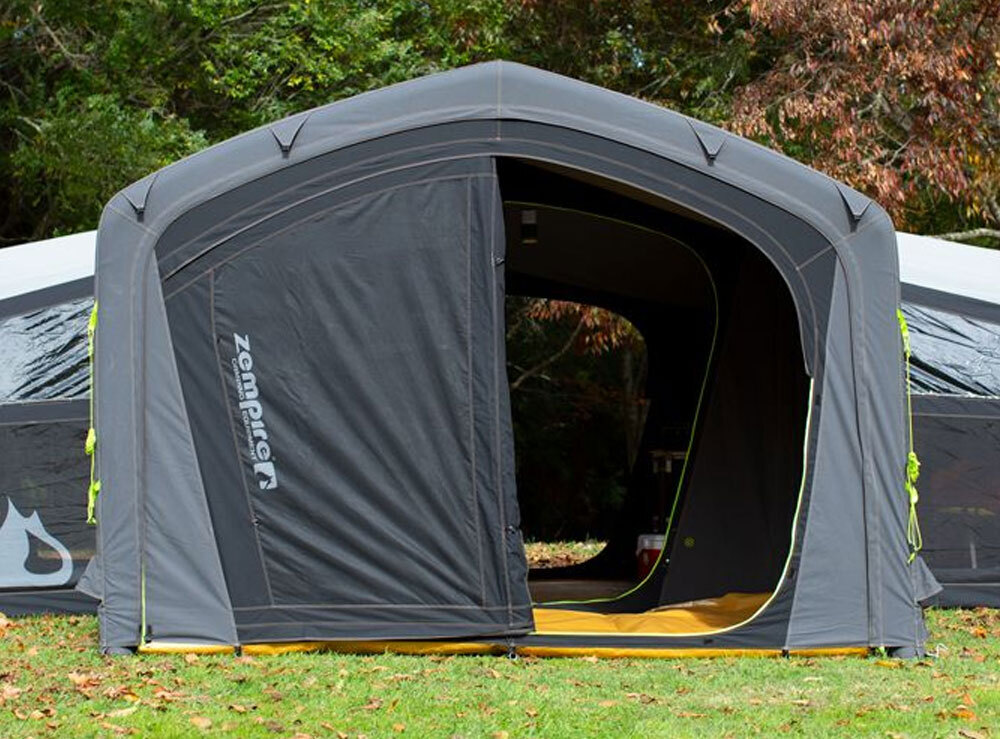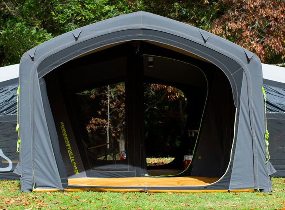 Sized to fit the inflatable awnings of the Delta Force V2 & Fortress V2 tents, the zip-on Zempire Air Elite Sunroom encloses the three sides of the awning, creating a protected living or kitchen area. With a full front opening & 3-panel window design, you have full control of light & airflow while keeping insects out. The removable floor creates a fully closed area if extra sleeping space is required.