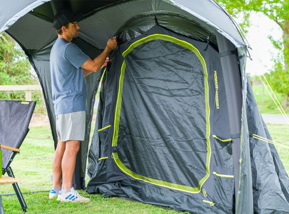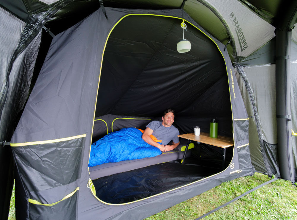 Upgrade your Zempire Speedbase 2 Air Shelter by zipping on a cozy, weatherproof sleeping pod for two.