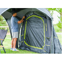 The Zempire Base 2 Bedroom Pod is easy to setup providing ample storage, and features like a 360° door, lantern hook and power cord access, it's the ultimate solution for comfortable couples camping, rain or shine.