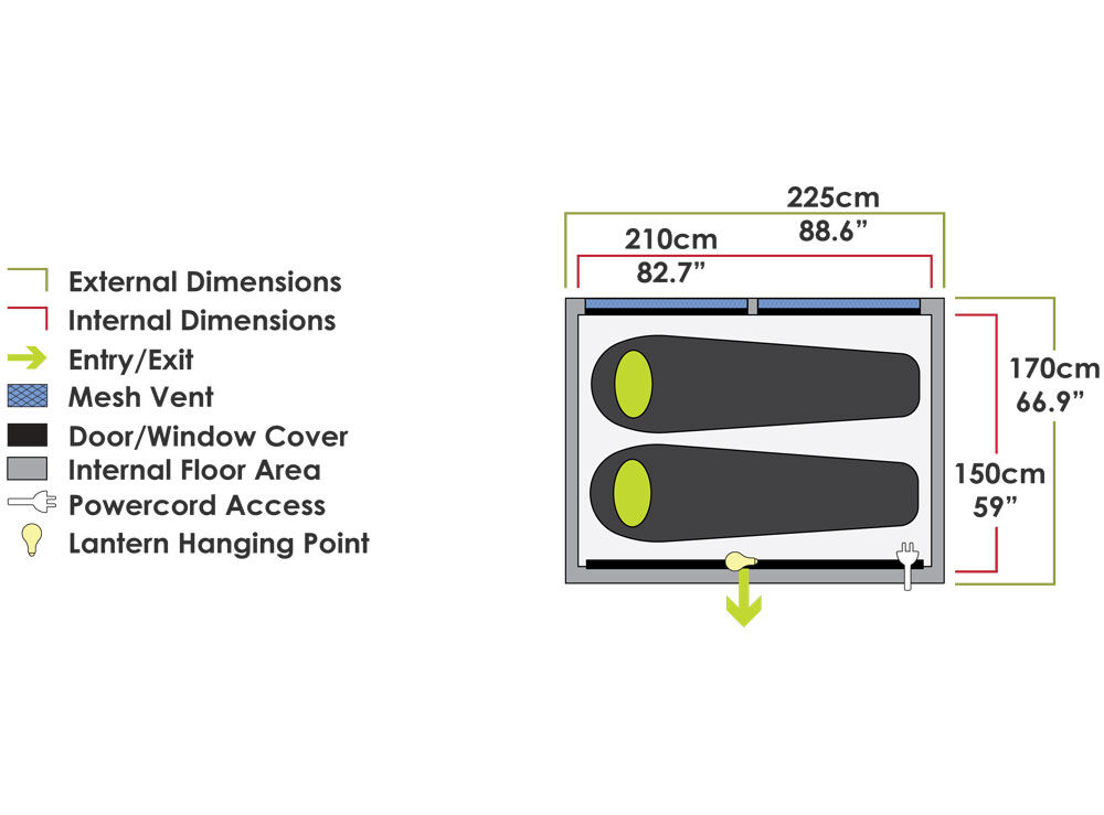 - Zip On Wall Attachments: Zips onto Speedbase 2 Air Shelter and pegs out neatly.