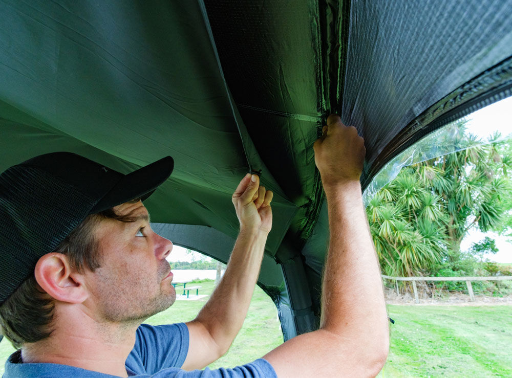 The Zempire Base 2 Heat Shield Liner easily clips into the inside roof of your Speedbase 2 Air Shelter to considerably decrease the internal temperature on hot sunny days.