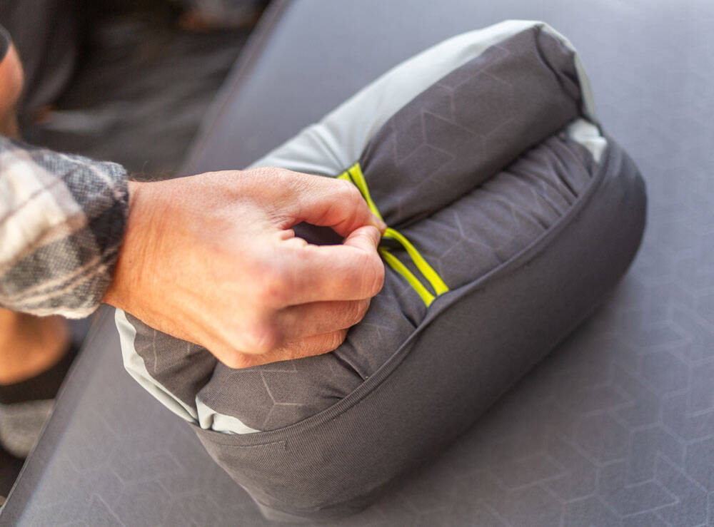 The Zempire Chill Pill DLX rolls up neatly to fit into a backpack and the cover can easily be removed for cleaning.