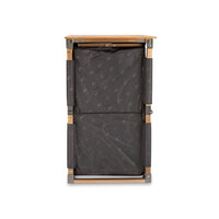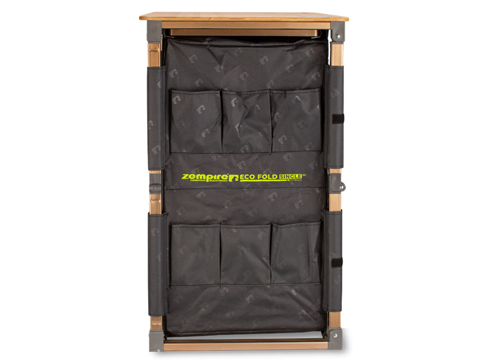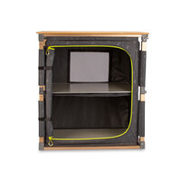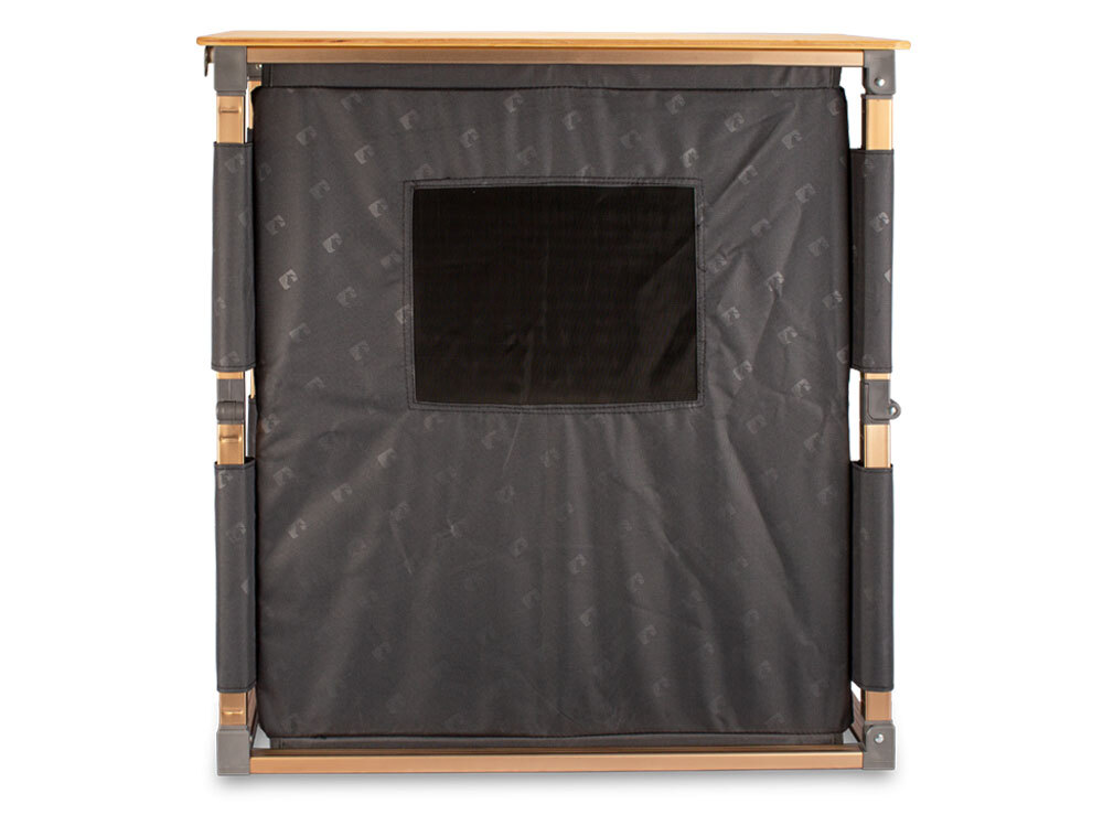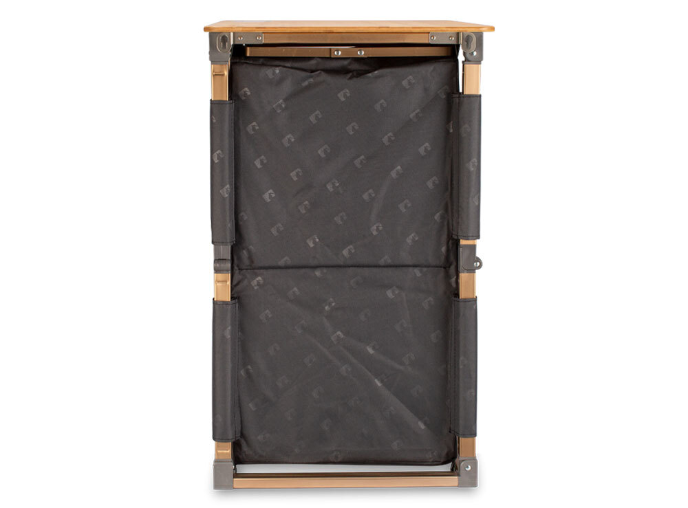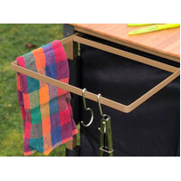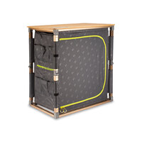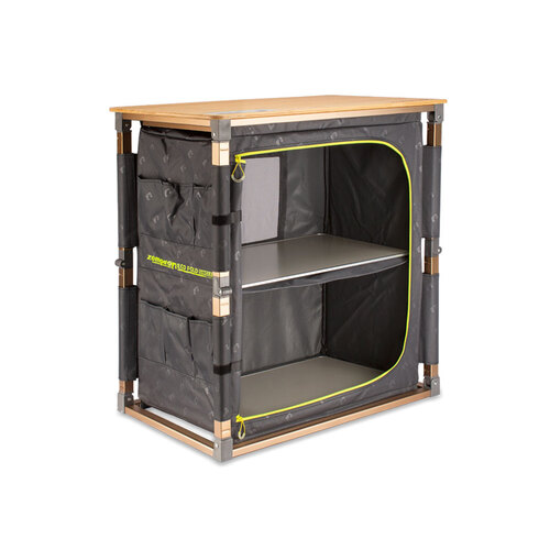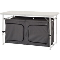 A perfect working surface to cook and prepare camp meals. The zip-closed lower cupboard, along with side storage pockets, help to help keep your campsite organized. A retractable utility rack keeps utensils close at hand and can also store a basin for wash-up.