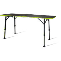 The Hexolite 160 has an ideal surface for cooking and meal prep and the wide base pivoting feet provide more stability on uneven ground. Equipped with a push button frame lock to increase stability and make set up and packdown simple, the table height can also be adjusted and locked in with the flick of a lever on the individual legs.