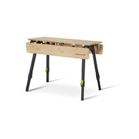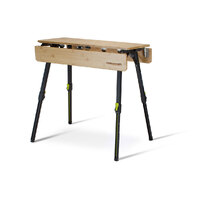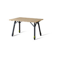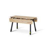 New slide-out brace plates make setup and packing away much easier, while also enabling a drop-down panel option to change the tabletop size to use in tight spaces. The table height can be adjusted and locked in with the flick of a lever on the individual legs.