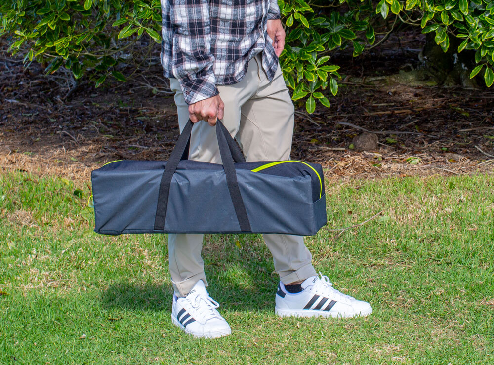 The Kitpac Pro Standard is super compact and folds down to fit into a durable carry bag for seamless transport and use away from the campsite.