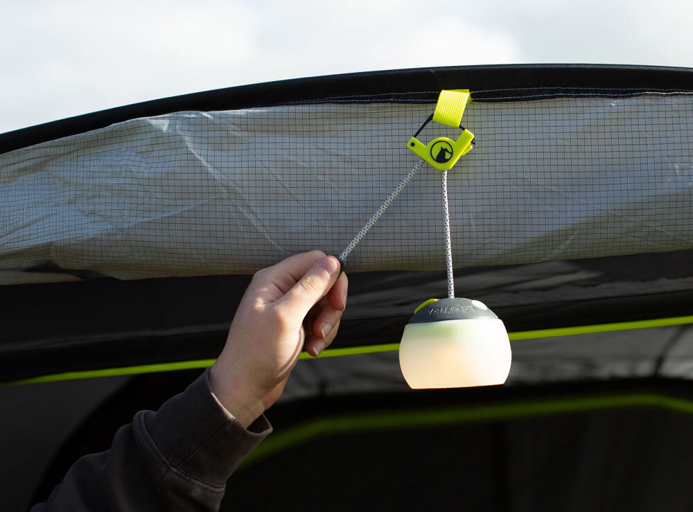 - Hanging hook: Enables the lantern to be securely hung up high to shine light throughout the entire tent.