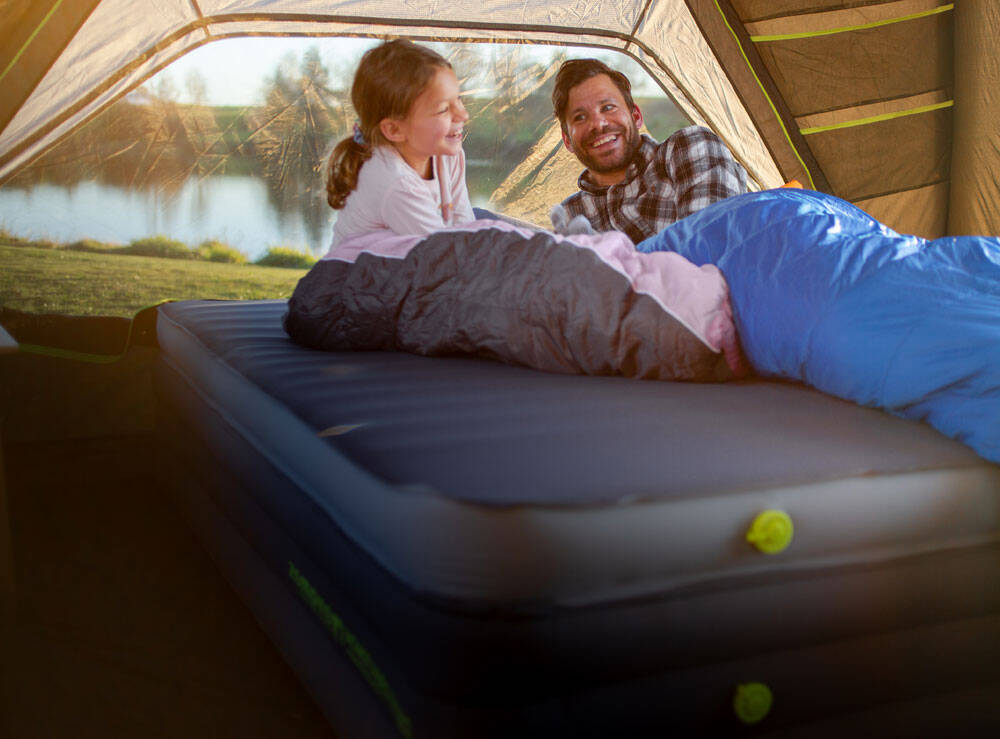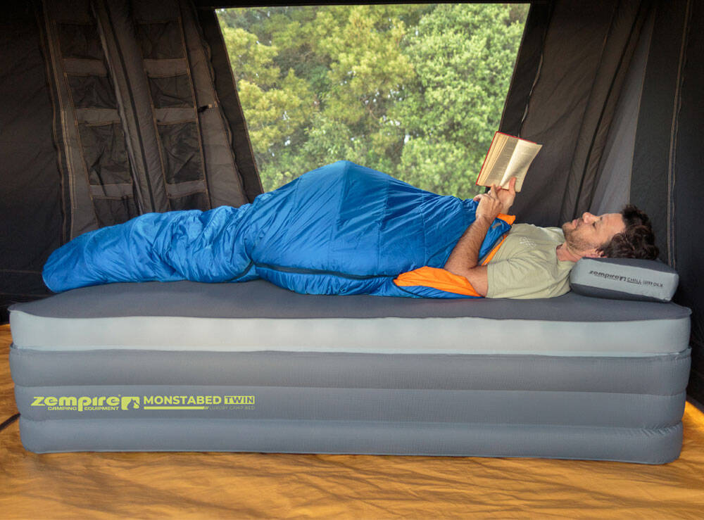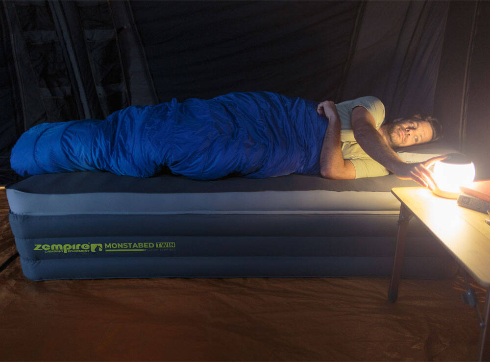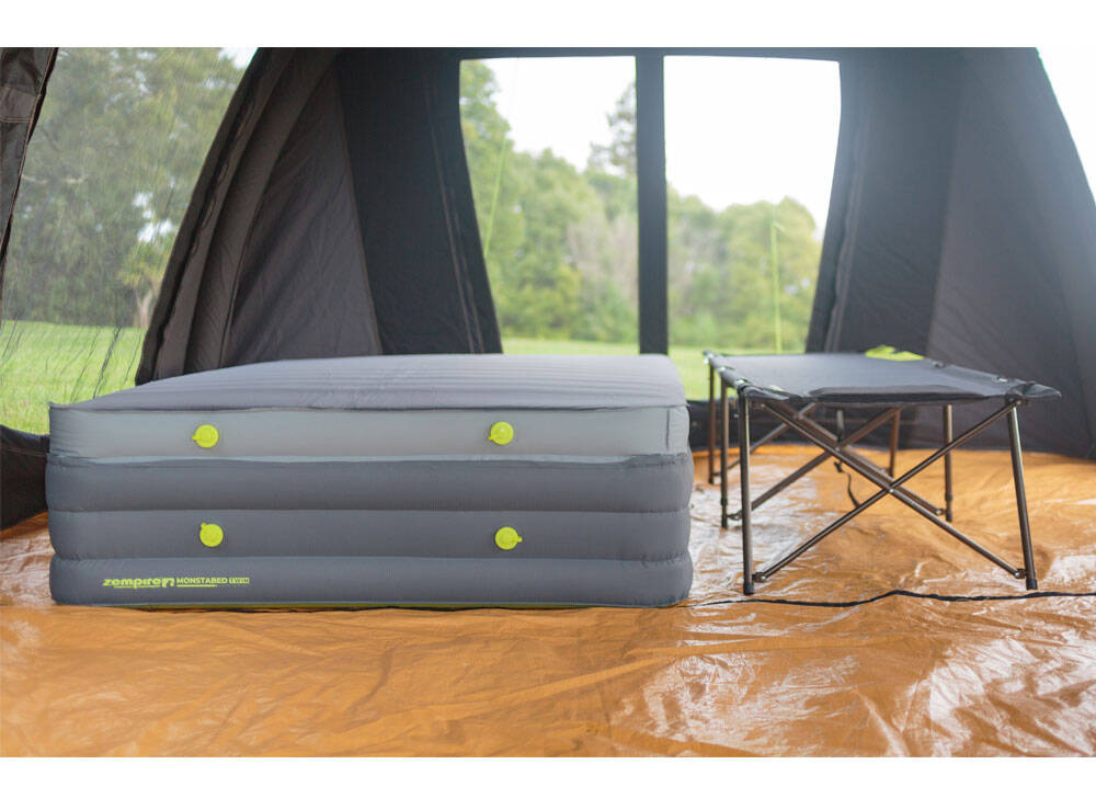 The Monstabed Twin will revolutionise how campers sleep in tents and can be easily inflated with a compact Monstapump (not included).