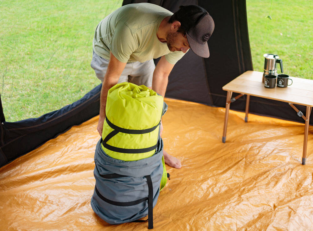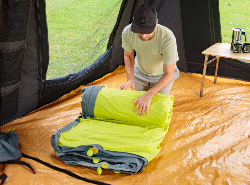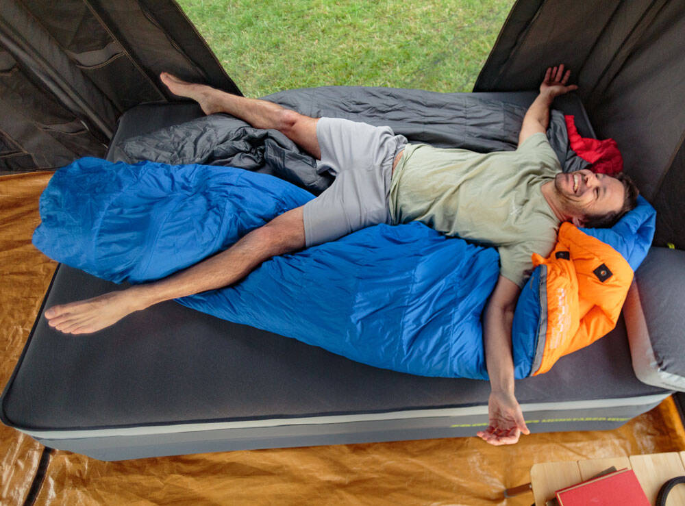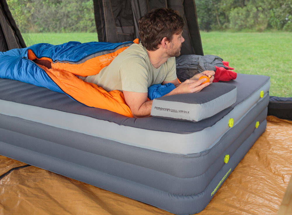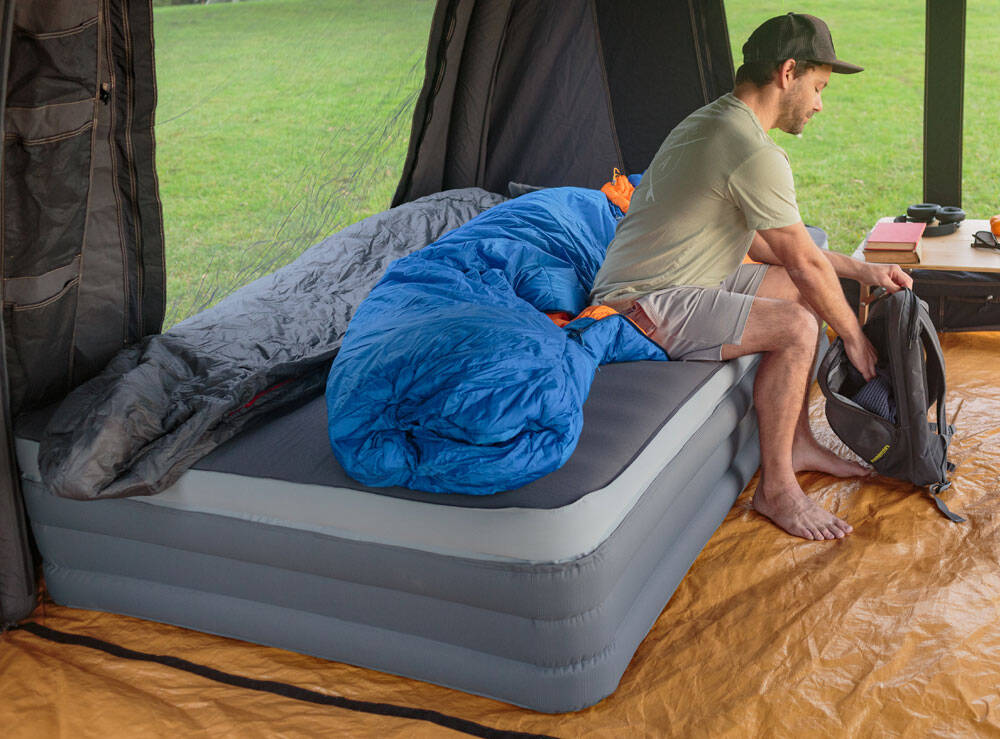 The Monstabed Twin will revolutionise how campers sleep in tents and can be easily inflated with a compact Monstapump (not included).