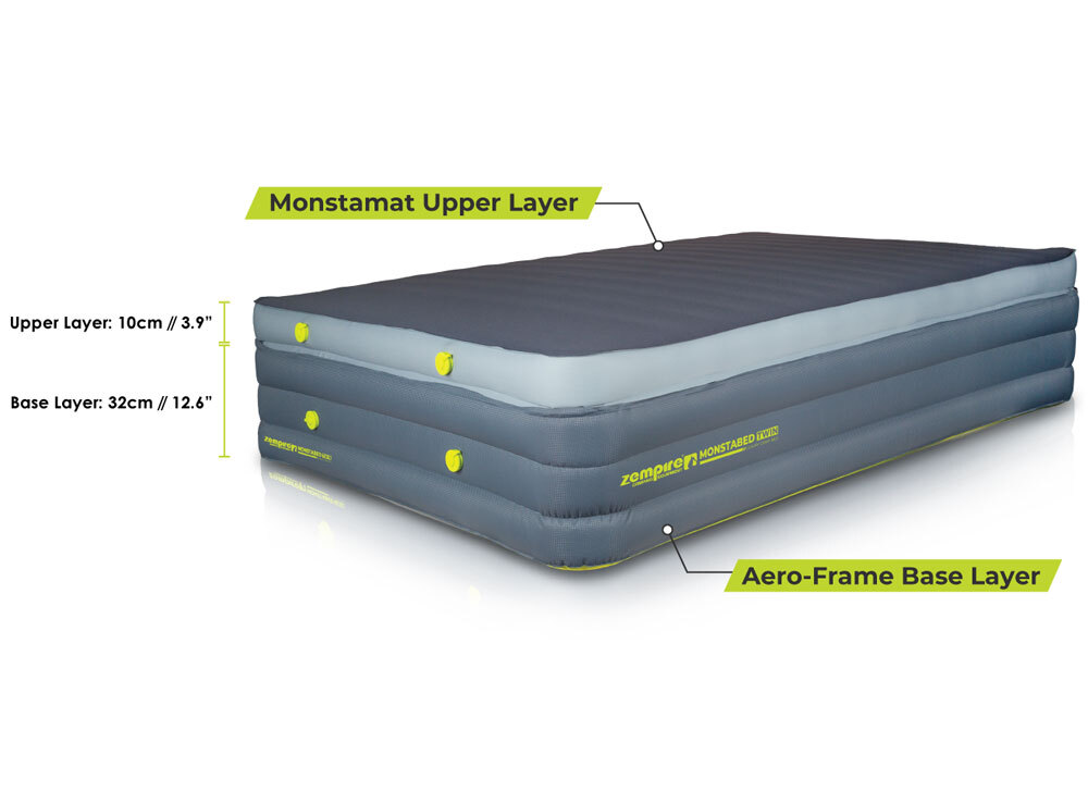Incorporating Zempire's patented technology, experience the best sleep you've ever had at a campsite. The Zempire Monstabed Twin combines Zempire's super comfortable Monstamat mattress with a durable inflatable bed base.