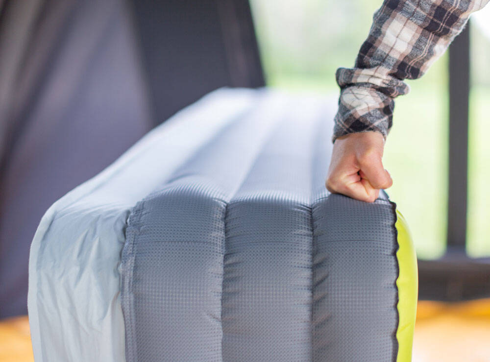 - Cross cored: Reduces weight, pack size, and the inflation time of the mat.
