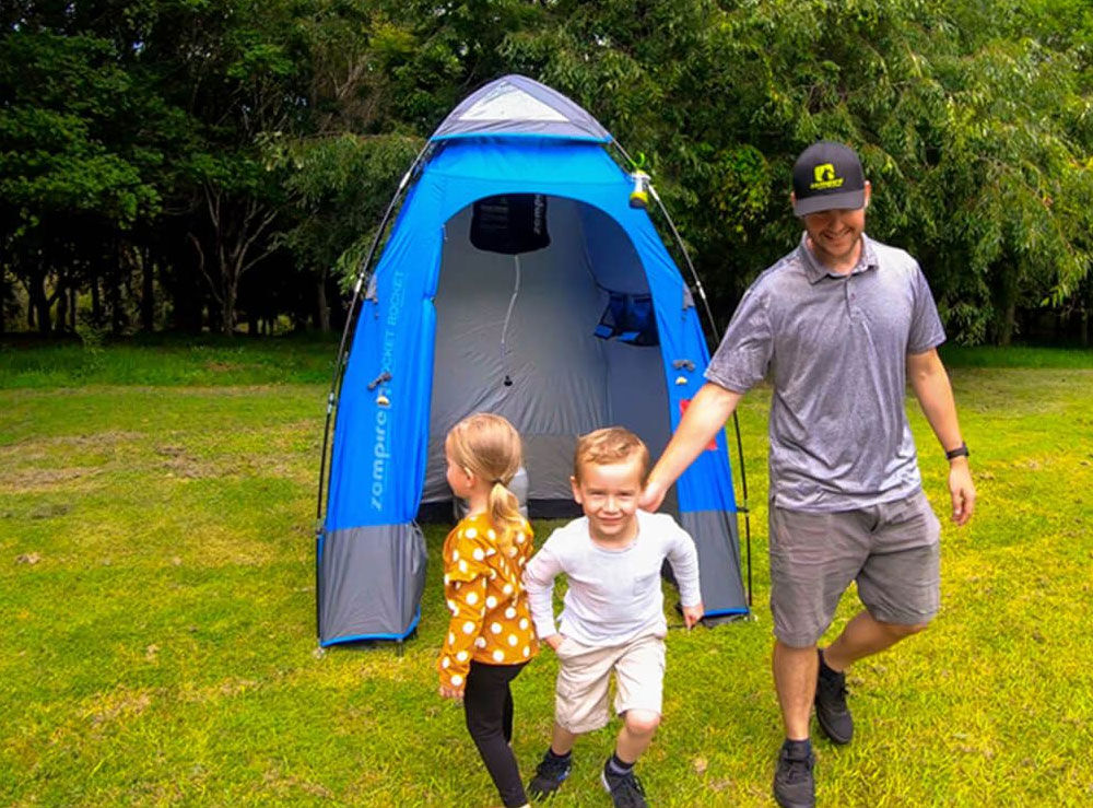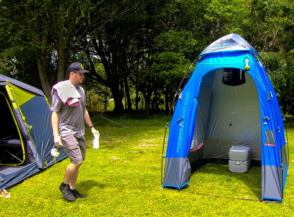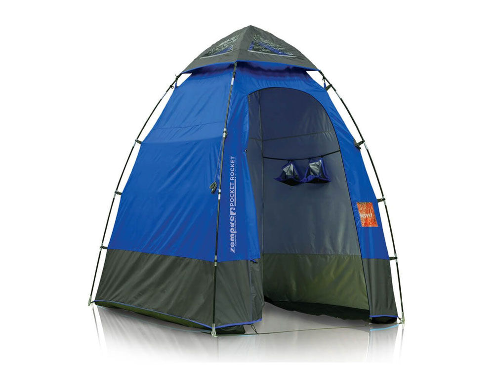 The Zempire Pocket Rocket is a campsite utility tent with a tall profile & sturdy fibreglass frame. Ideal for use as a changing station, toilet shelter, or shower tent.