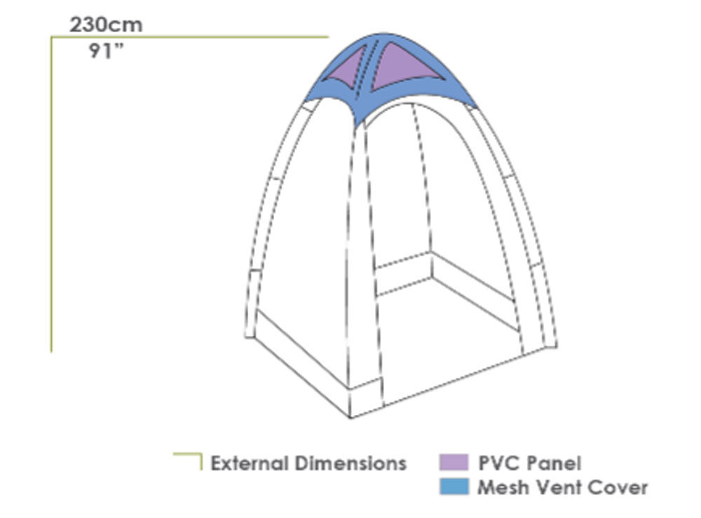 - Busy Sign: An integrated "busy sign" can be displayed through a clear PVC window to let other users know when the shelter is occupied.