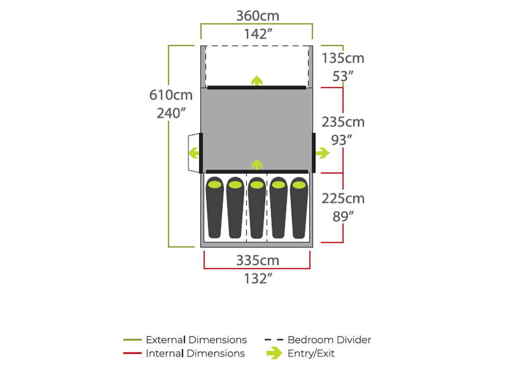 With a generous internal living area, there's plently of room to spread out and relax away from the elements. The rear multi-room inner provides superb flexibility for sleeping arrangements with up to 3 bedrooms. The front awning area can be effortlessly connected to an additional awning wall set or directly to a Zempire Aerobase 3 shelter for even more indoor space.