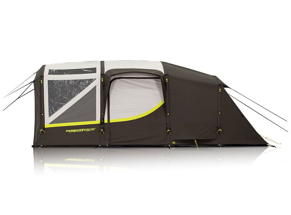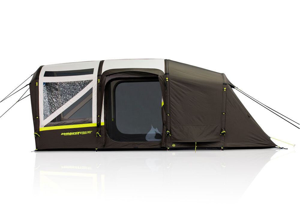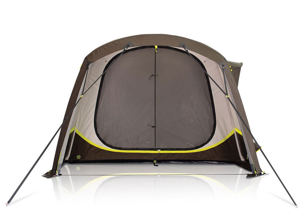 The front awning can be effortlessly connected to an optional wall set or to a Zempire Roadiebase or Aerobase Shelter. Zempire's Pro TM V2 provides an outstanding balance of space, comfort and durability in a small portable package.