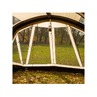 You can also use both walls together when you set up the waterproof wall as a gullwing awning (poles included). Tinted panorama PVC windows on the poly wall let light in while sealing the elements out.