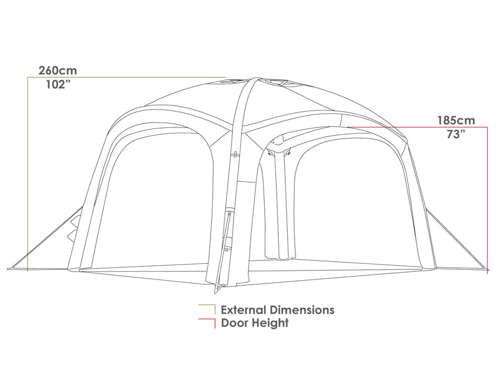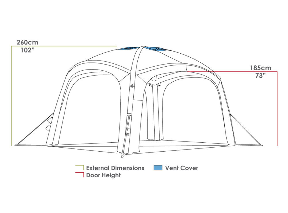 - Entire shelter can be inflated in under 2 minutes from a single point, for quick setup. Absolutely no poles needed